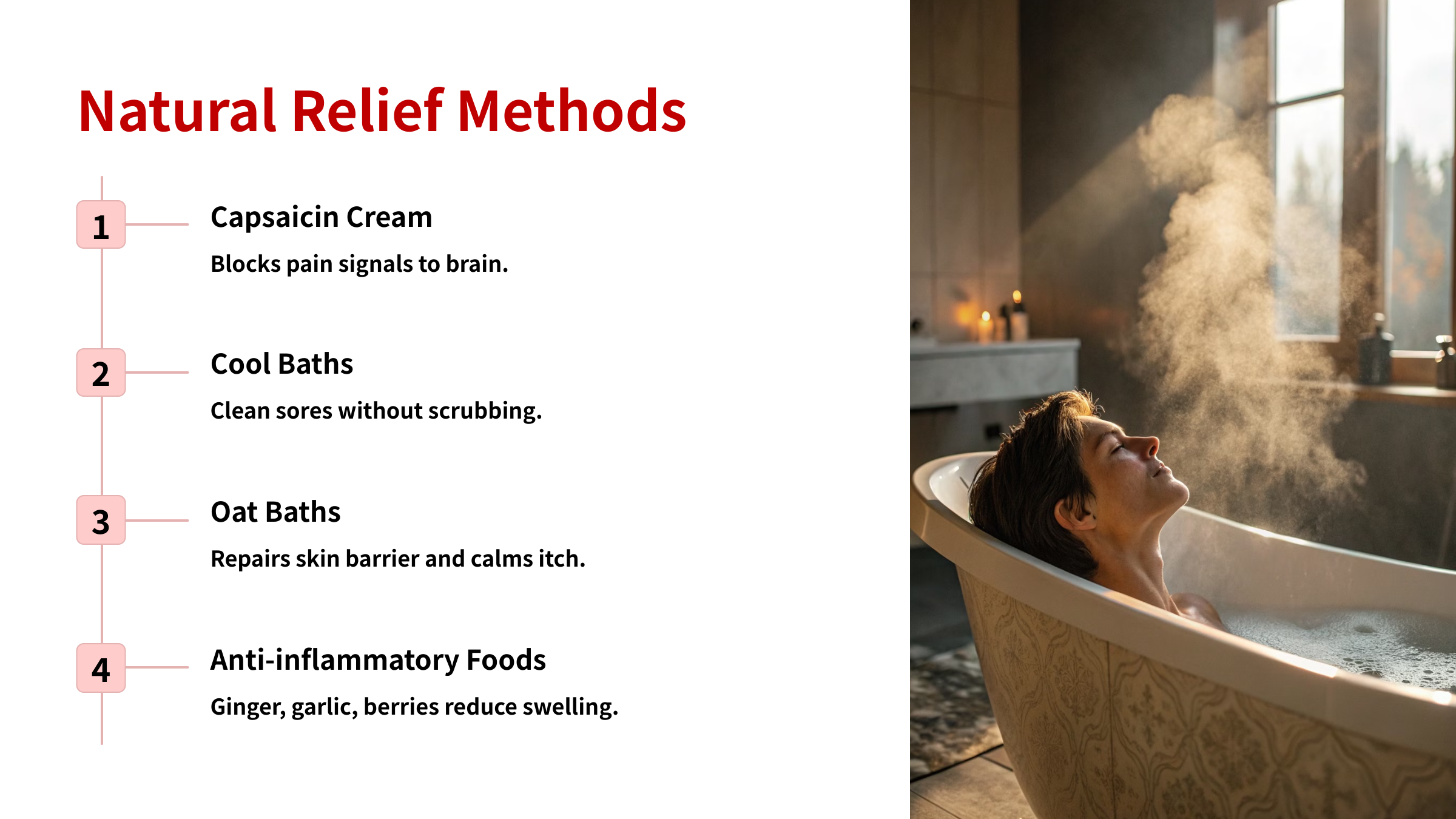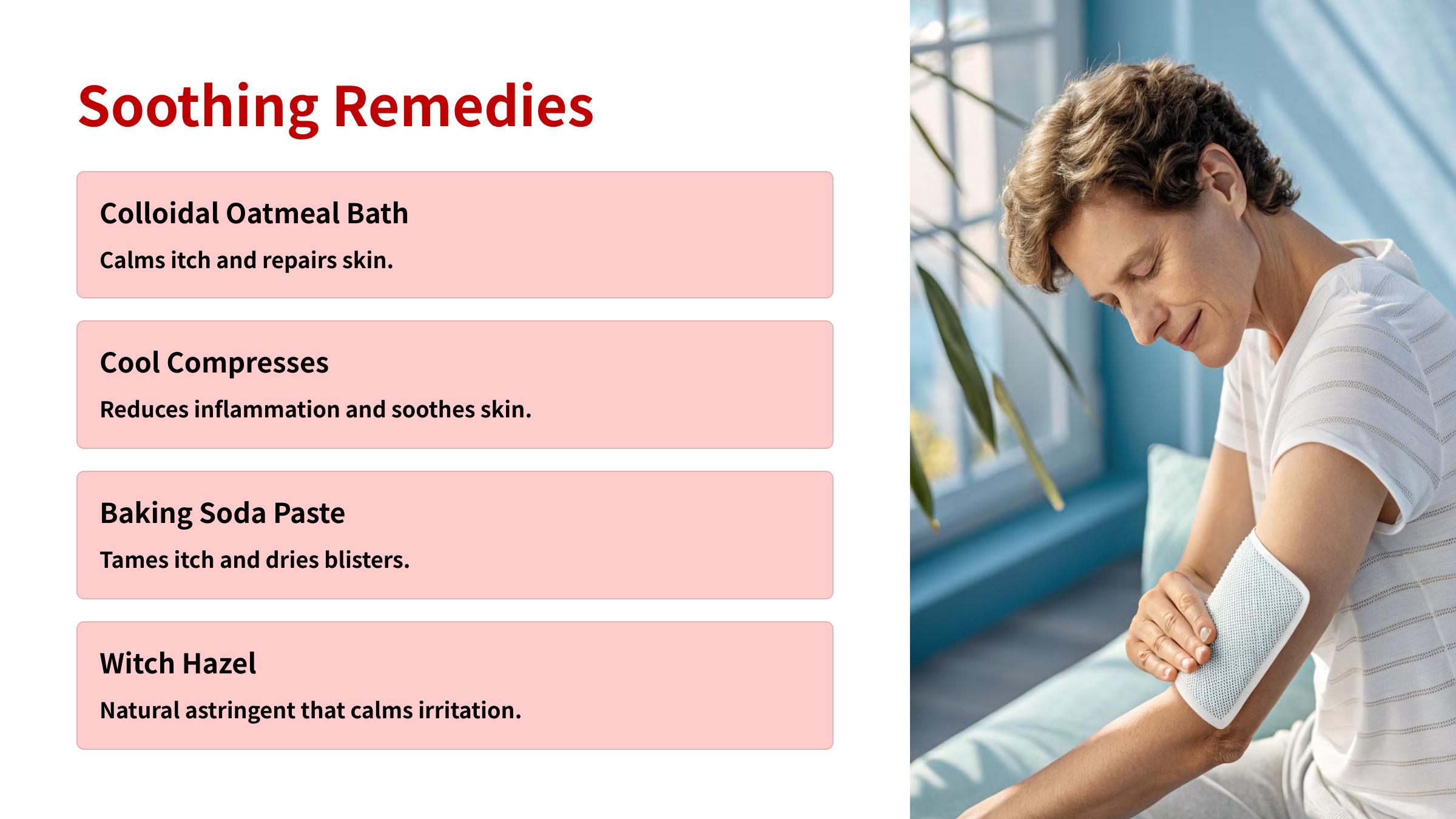 📌 Verified natural remedies including colloidal oatmeal baths and cool compresses.
