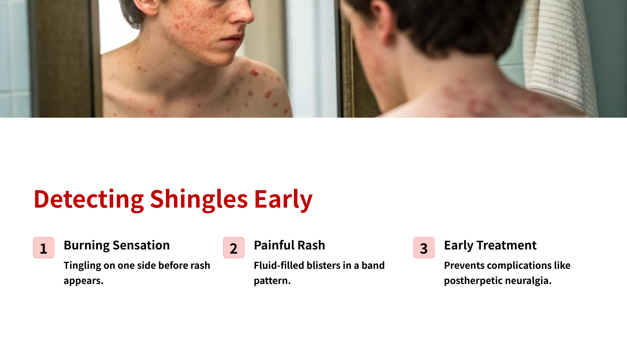 To make catching shingles early a bit easier, here's a quick rundown of what to watch out for: