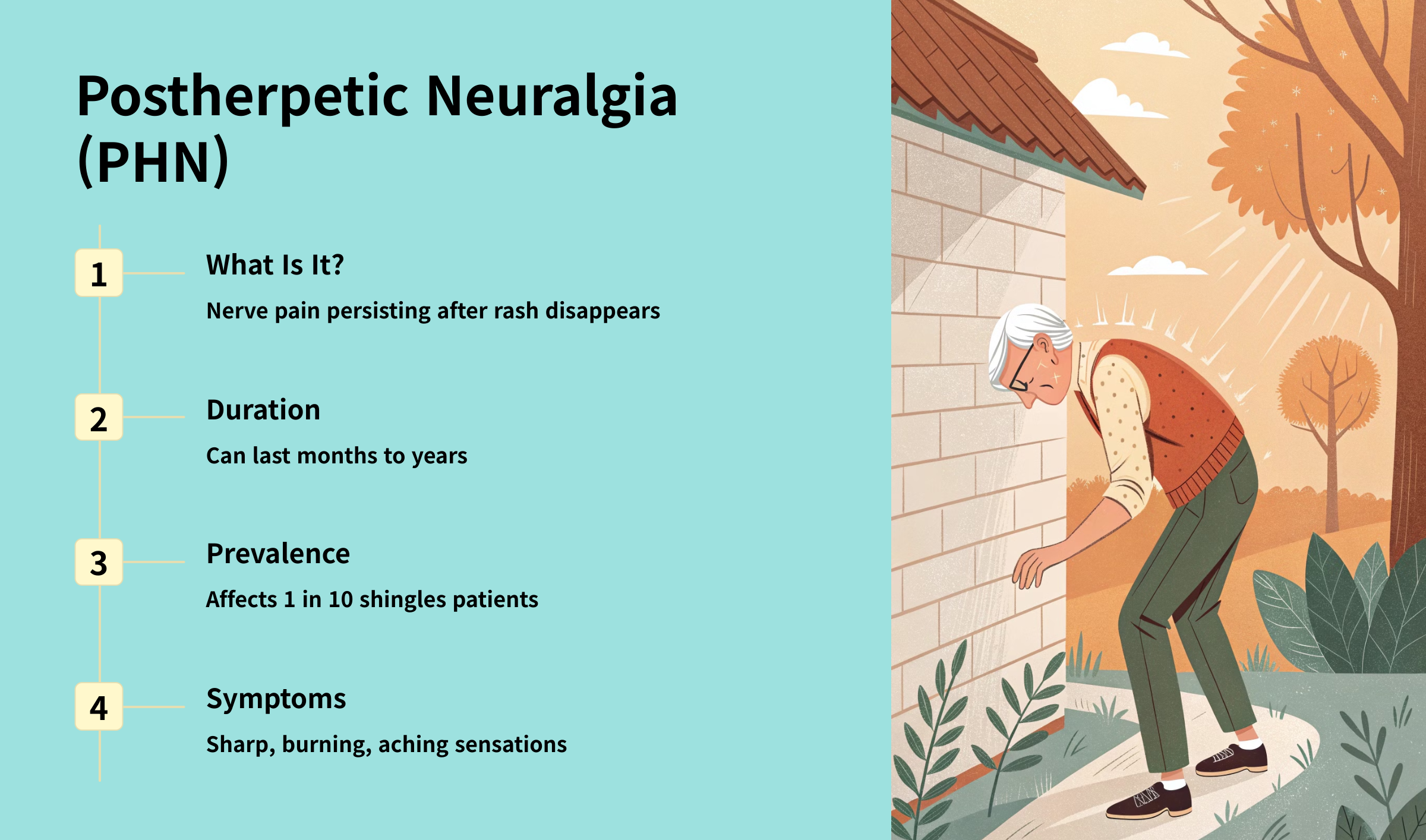 | Postherpetic Neuralgia | Long-term nerve pain after shingles resolves | Pain meds, therapy |